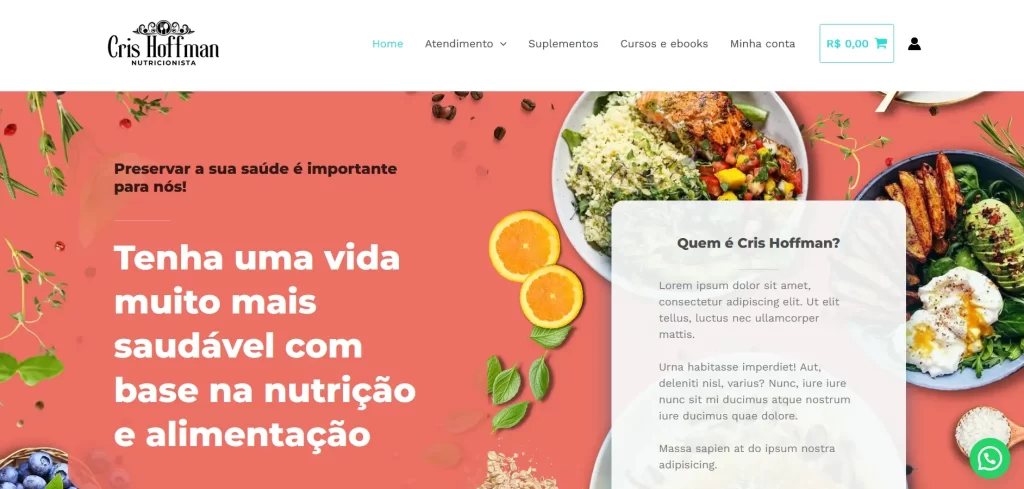 Eleve a presença digital do seu negócio com o template “Nutricionista”. Este tema oferece uma estrutura completa e intuitiva para apresentar seus serviços, equipe e diferenciais de forma profissional e impactante.